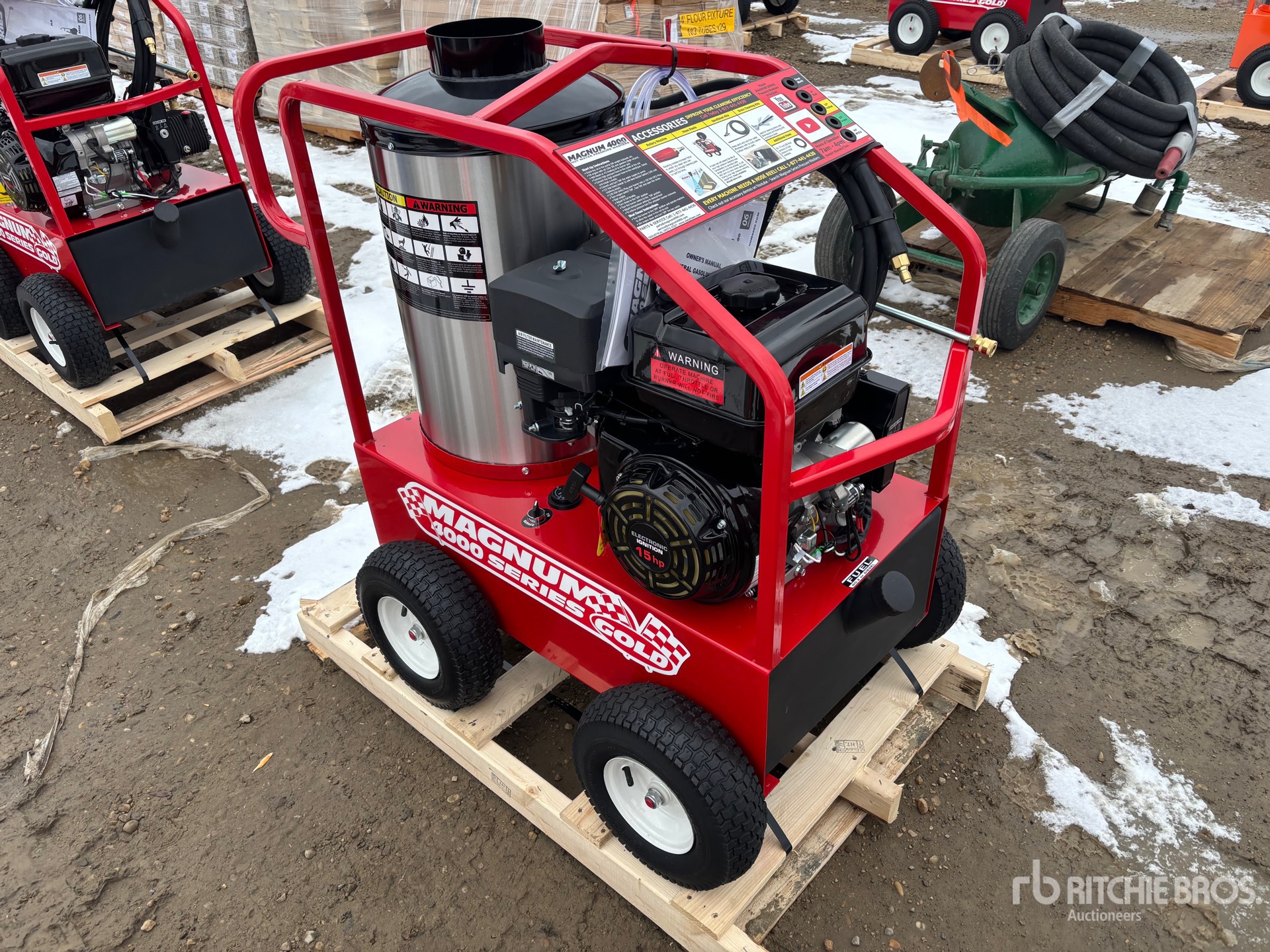 4000 psi Rating, Water Heater, Hose, Spray Wand, Lifan 1 Cylinder 15 hp Gasoline Engine, 420 cc