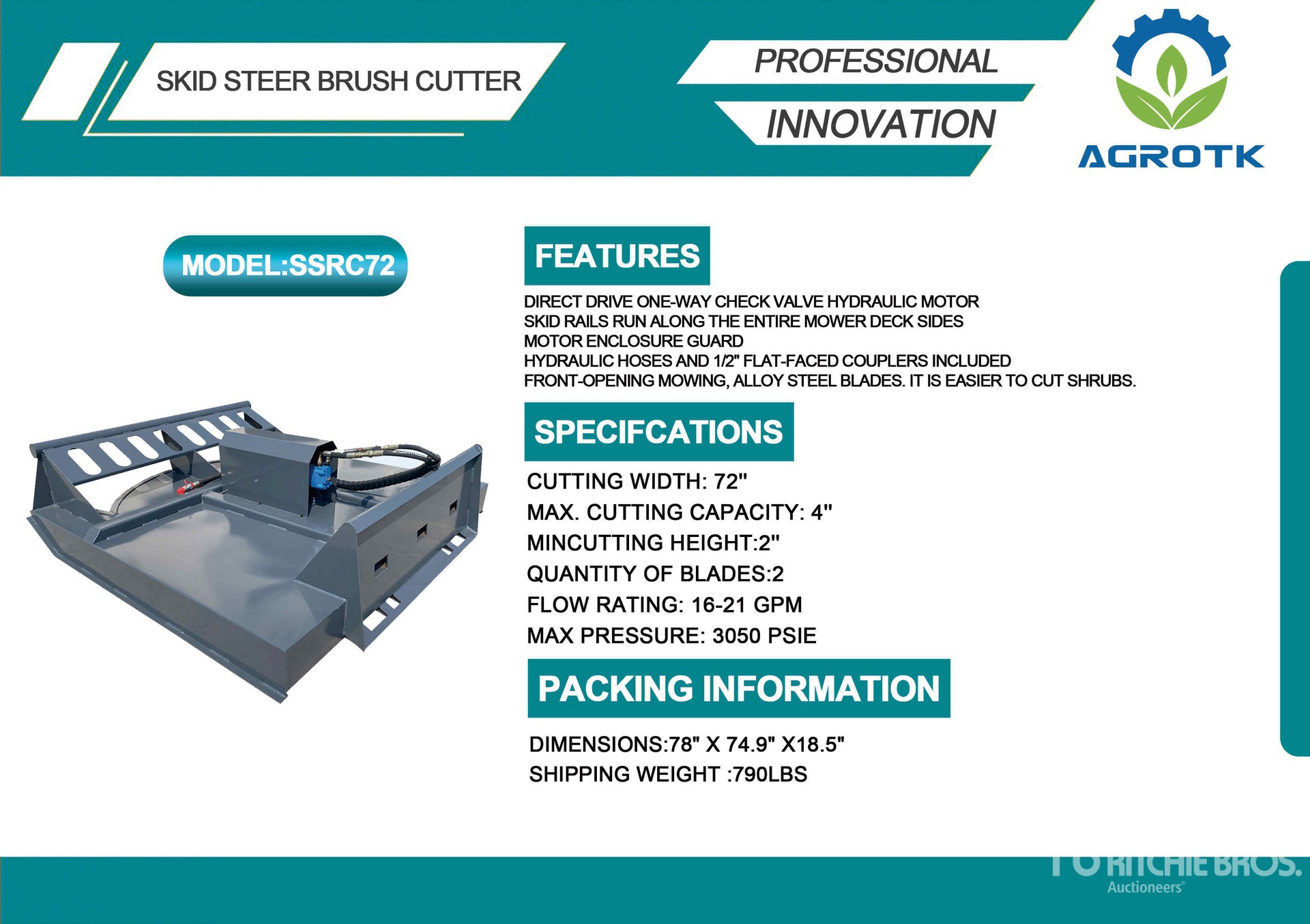 2026 Mower King SSRC72 72 in Skid Steer Brush Cutter (Unused)