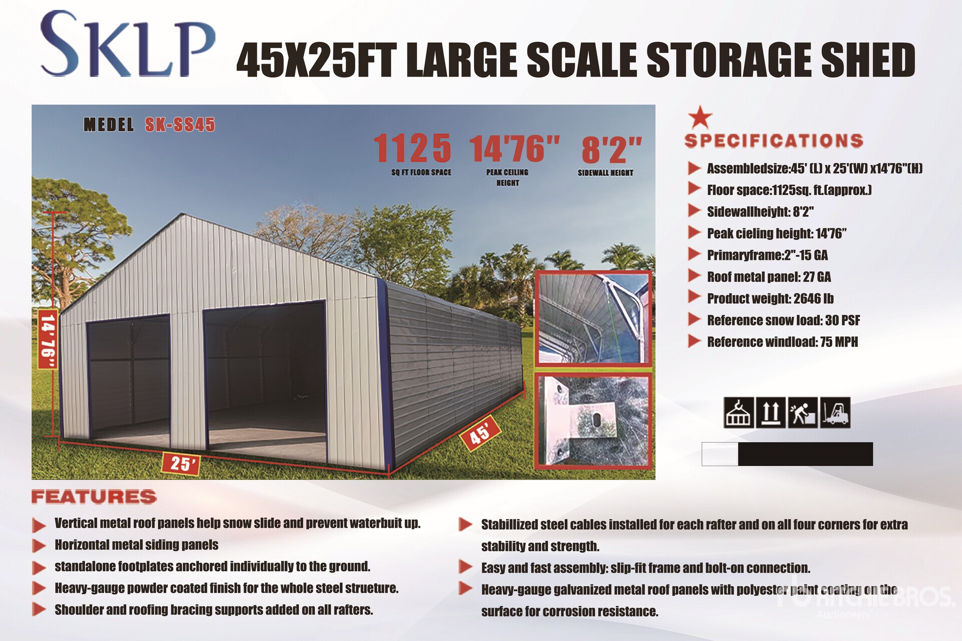 2026 SKLP SK-SS45 45 ft x 25 ft Double Garage Metal Tents and Tent Components (Unused)