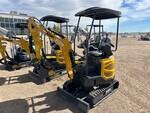 US EPA Label, 2 ft 8 in Stick, Auxiliary Hydraulic Plumbing, Backfill Blade, 7 in Rubber Tracks, 16 in Digging Bucket, Manual Thumb, Product images displayed are stock photos. Item is new/unused.