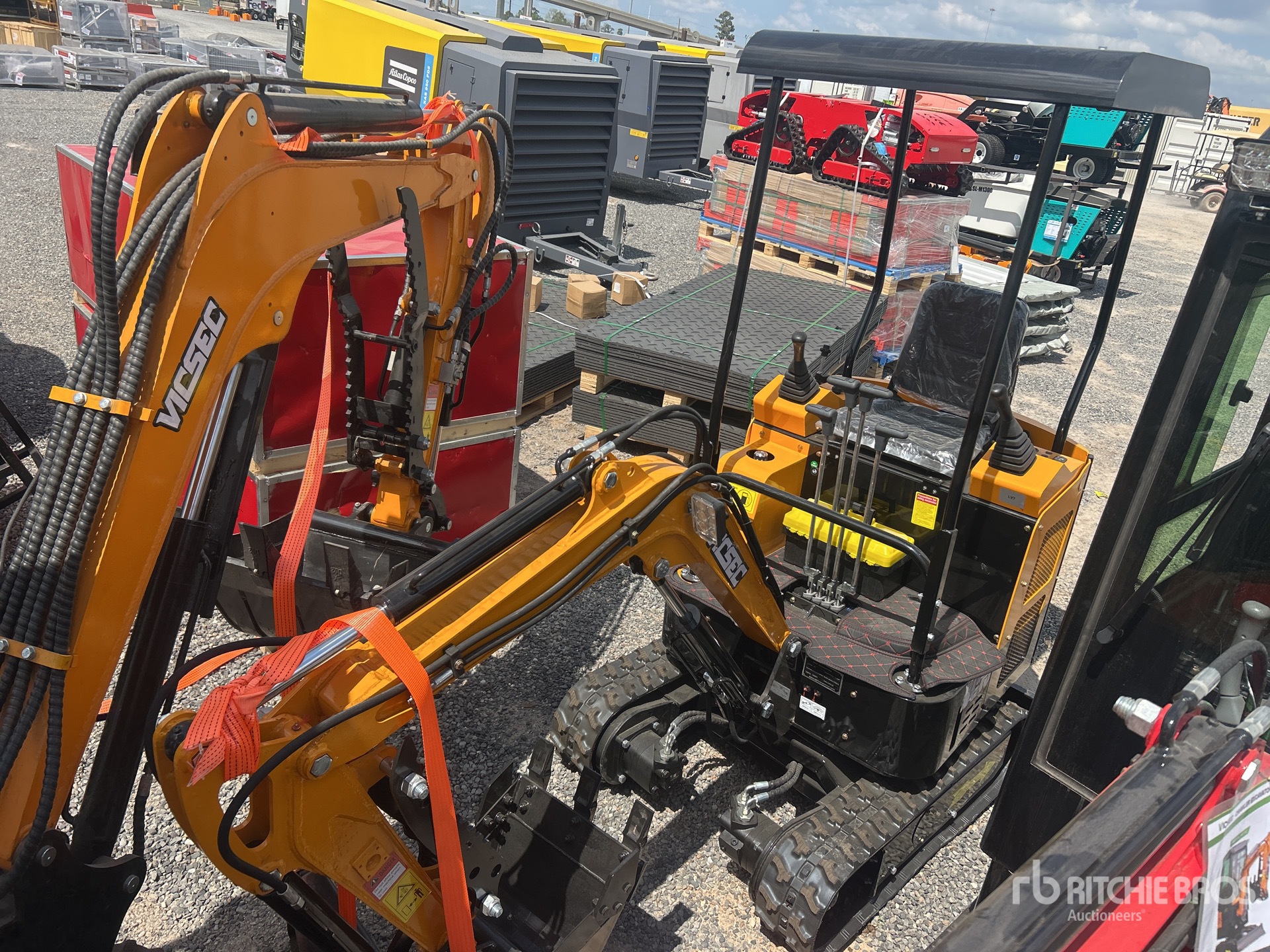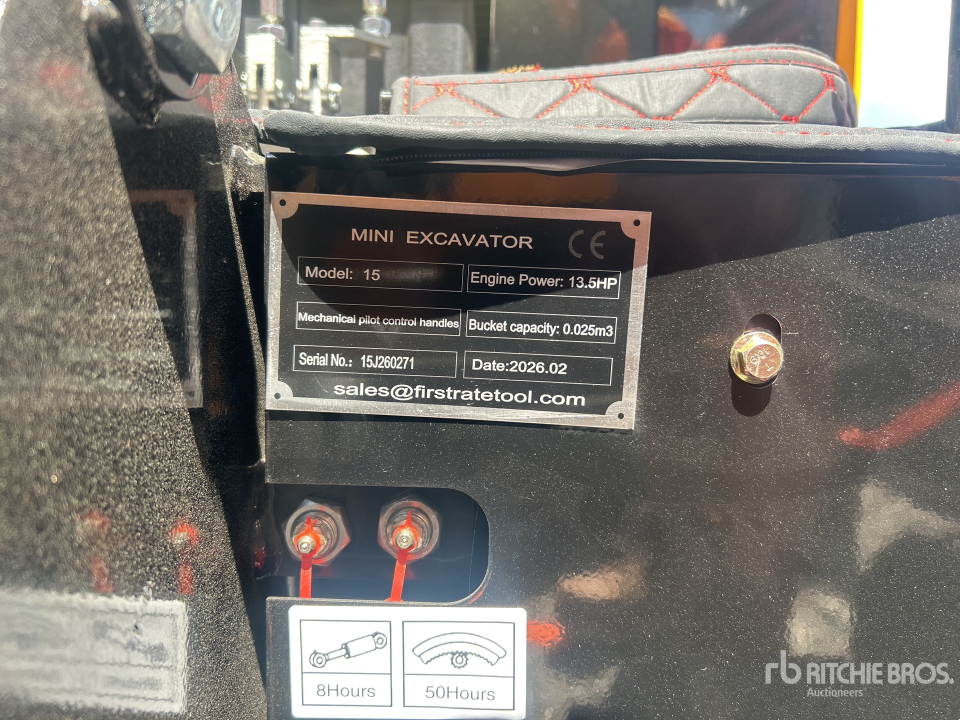 2025 US EPA Label, 2 ft 7 in Stick, Backfill Blade, 7 in Rubber Tracks, Manual Quick Coupler, 16 in Digging Bucket, Manual Thumb