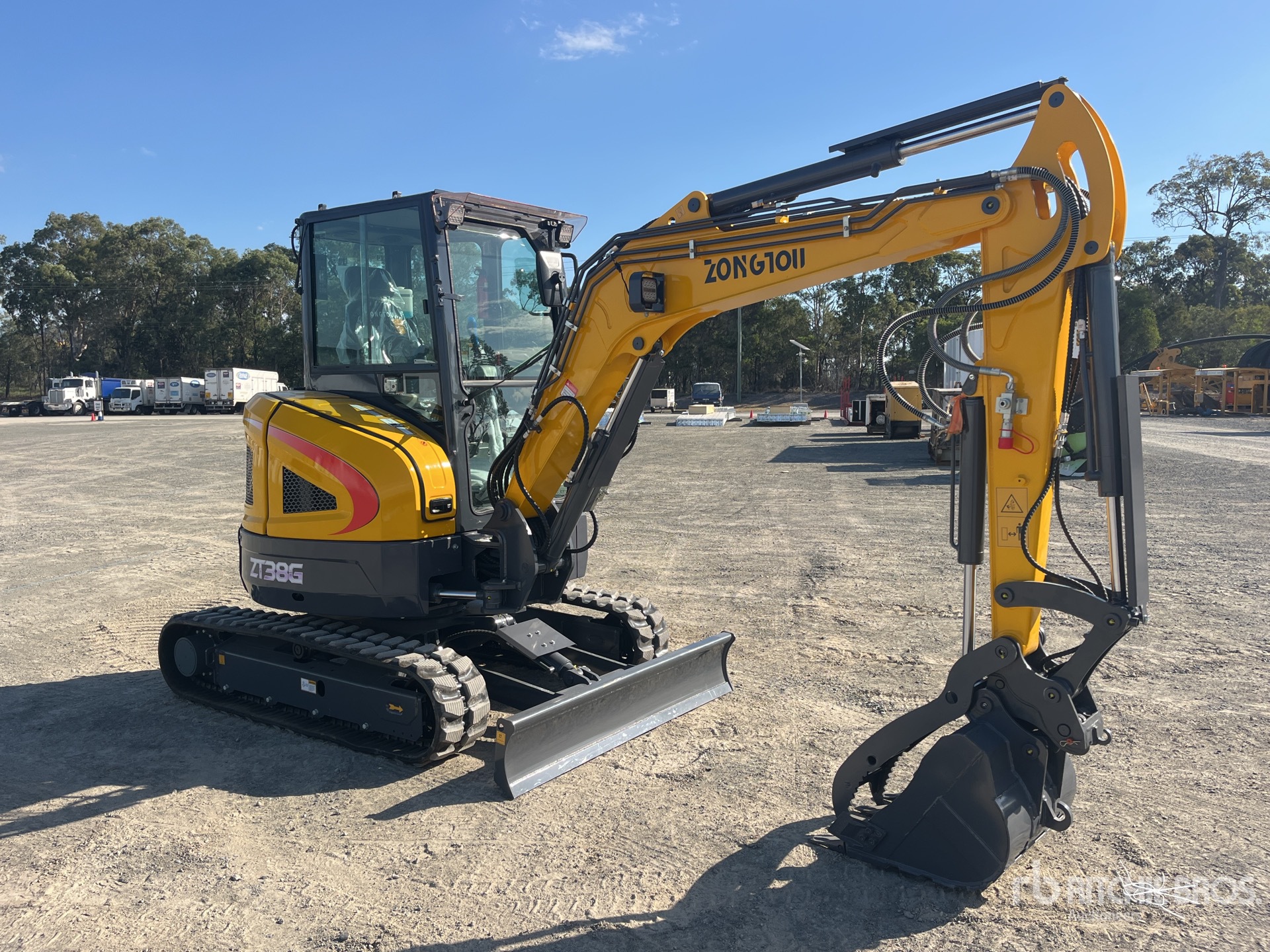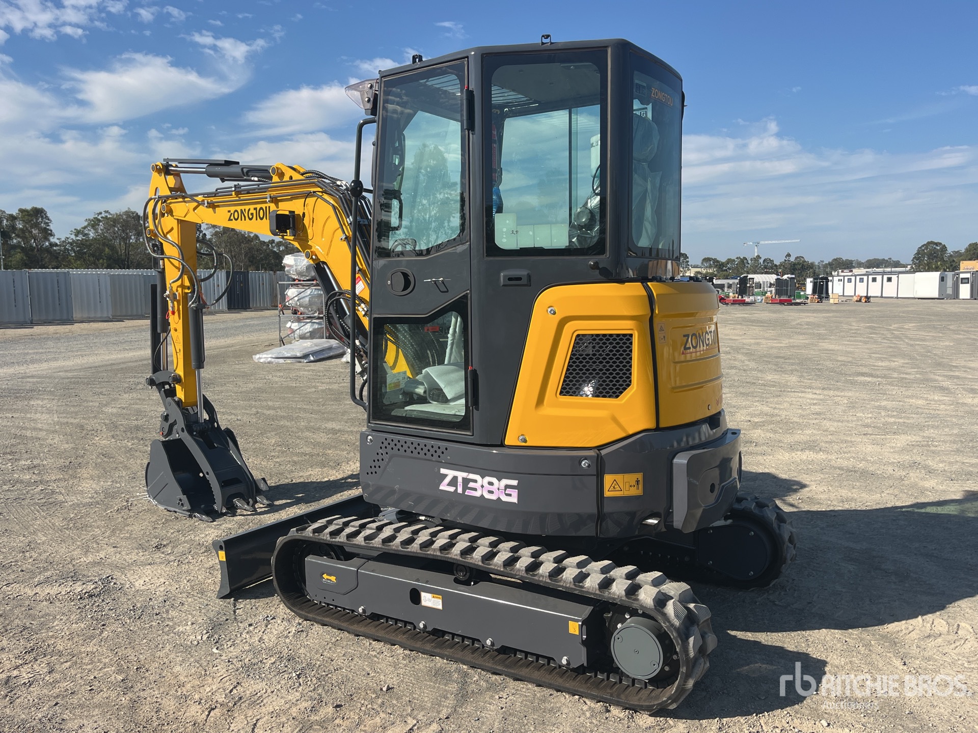 Enclosed Cab, Air Conditioner, Swing Boom, 1400 mm Stick, Auxiliary Hydraulic Plumbing, Boom Check Valves, Backfill Blade, 300 in Rubber Tracks, Hydraulic Quick Coupler, 580 mm Digging Bucket, Hydraulic Thumb