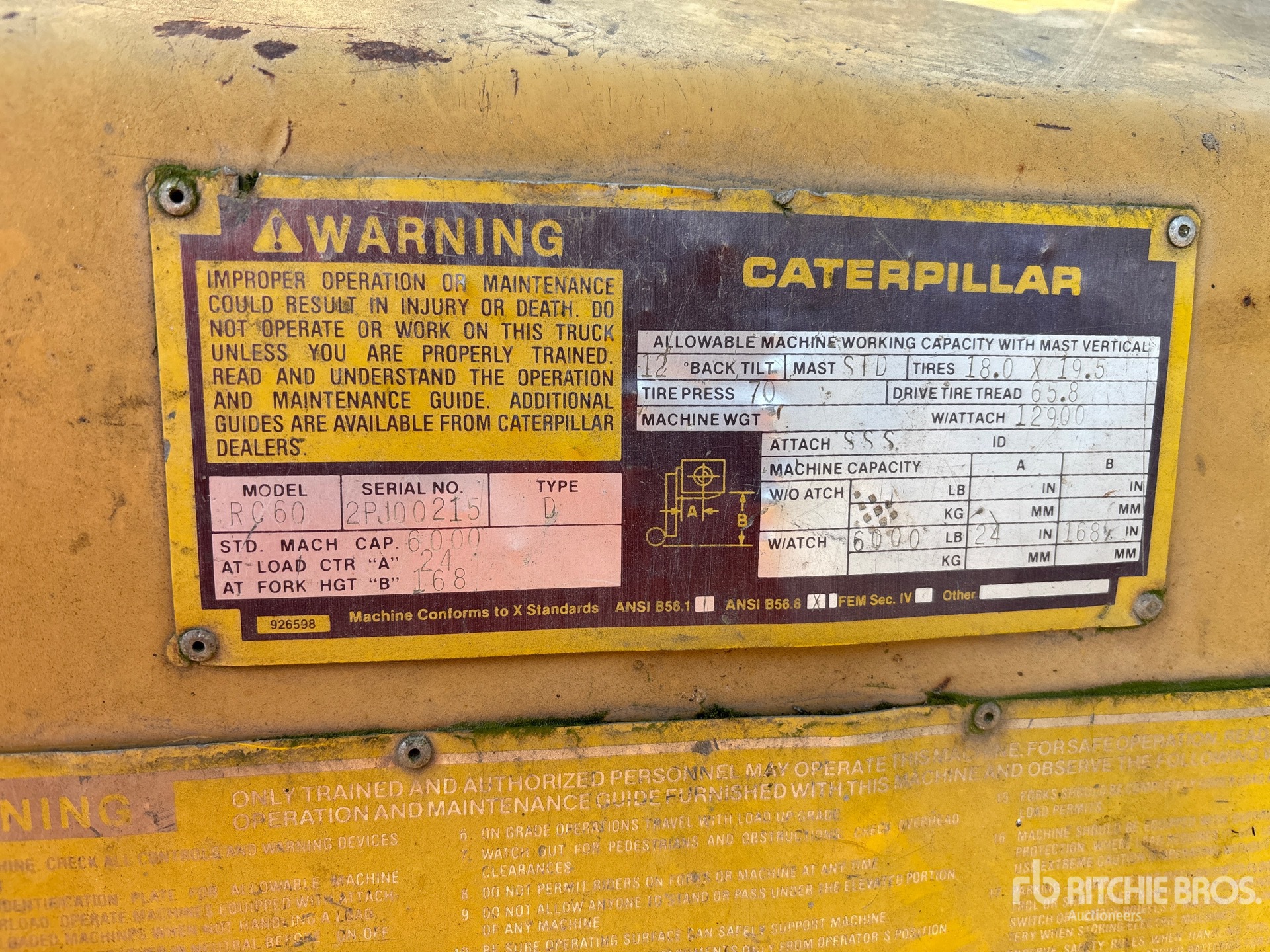 The detailed equipment information is limited in scope, and Ritchie Bros. Auctioneers has not inspected any aspects or components of the equipment other than those expressly set forth herein. Unless expressly stated, we make no representations or warranties, express or implied, concerning the equipment or its components, including without limitation any representations or warranties concerning functionality, conformity or compliance with any safety standard or requirement of any applicable authority or regulatory body, fitness for any particular purpose, or merchantability. You are strongly advised to perform your own detailed inspection of the equipment prior to bidding.
