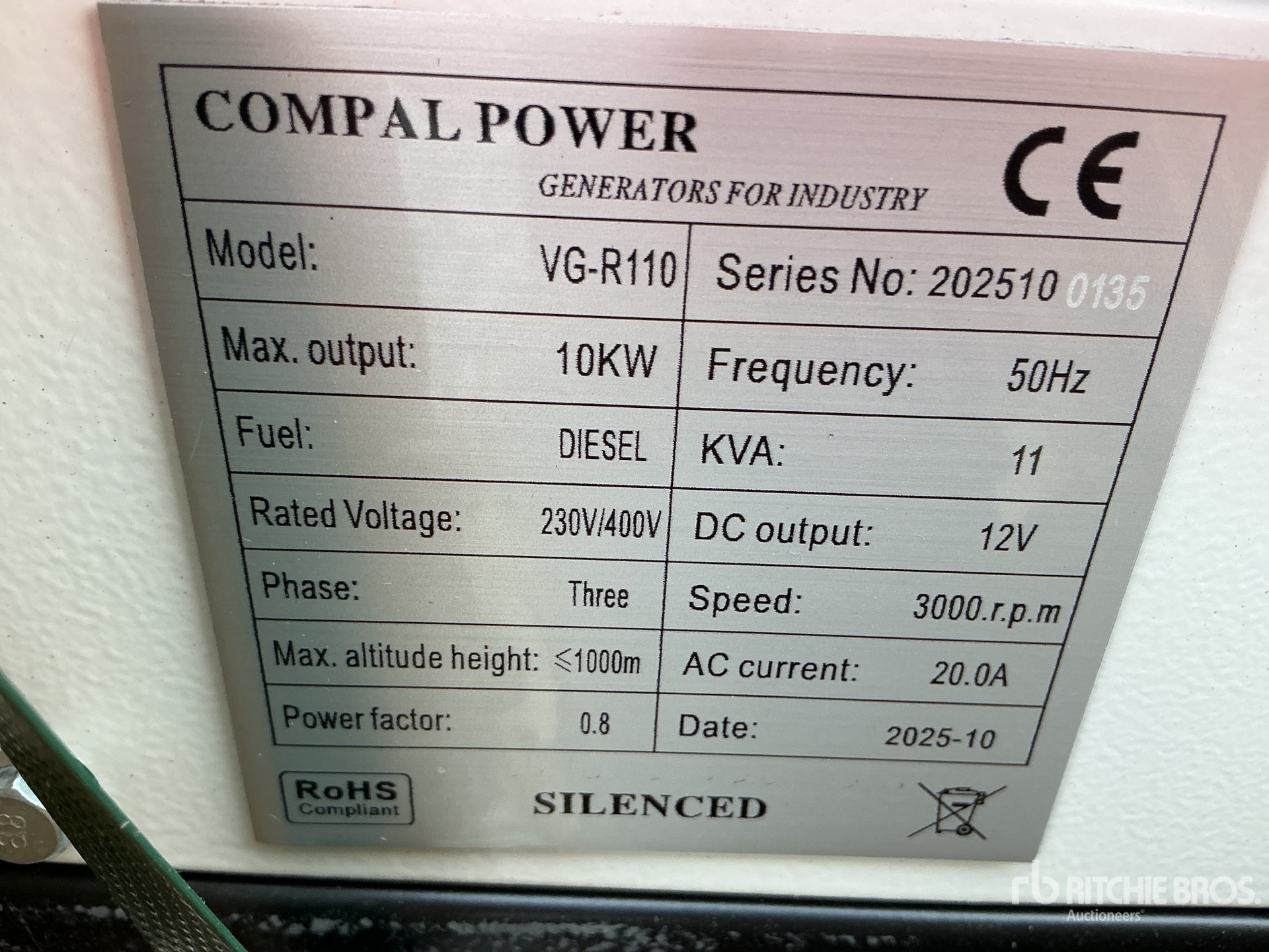 Compal VG-R110 10kW Portable Generator Set (Unused)