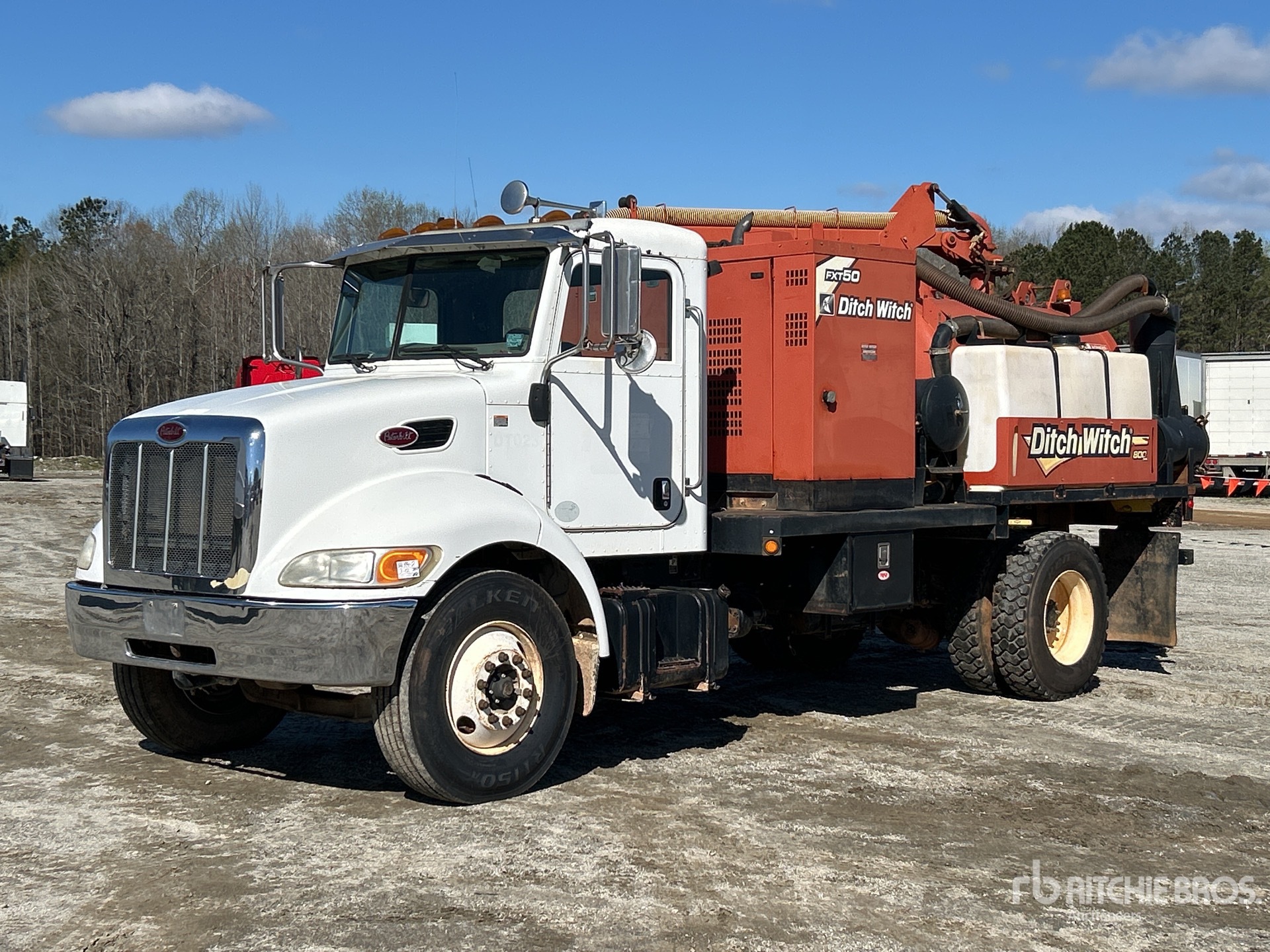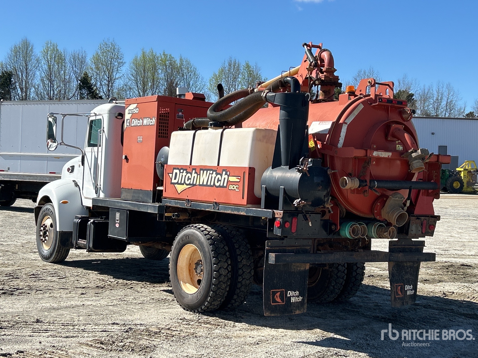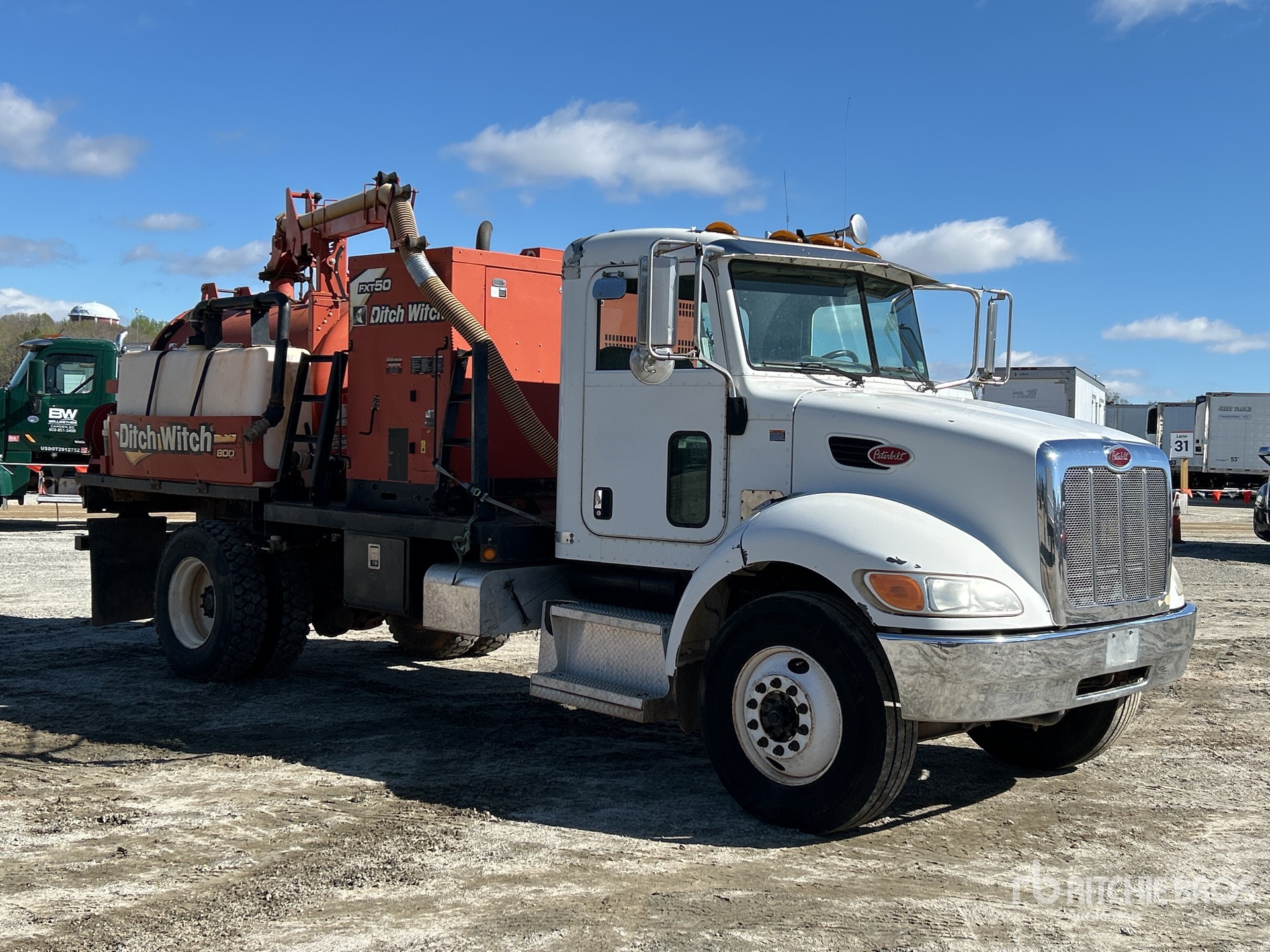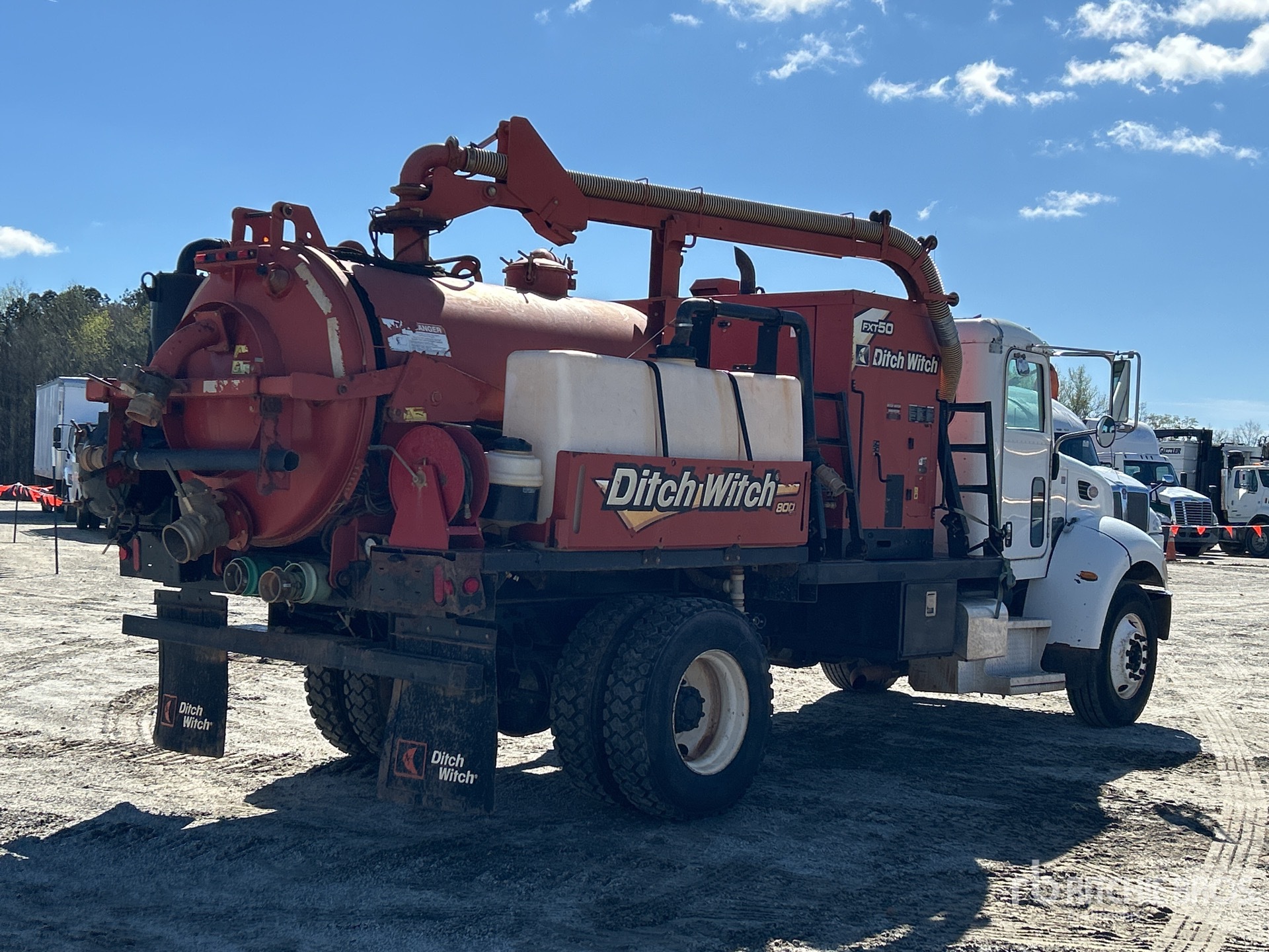 Paccar PX-8 6 Cylinder Diesel Engine, 08603 Engine hrs, Eaton Fuller FRO11210C 10-Speed Manual Transmission, 10000 lb Front Axle, 23000 lb Rears, Spicer S23-190D Drive Axles, 4.78:1 Axle Ratio, 33000 lb GVWR, 11R22.5 Front Tires, 11R22.5 Rear Tires, REYCO Spring Suspension, 189 in Wheelbase, Steel Debris Tank, 800 gal Fresh Water Tank, Full Open Tailgate, Wash Down System, Hydraulic Tailgate Locks, 9 ft Telescopic Boom, 4 in Suction Hose, Pump w/ Deutz 4 Cylinder Engine, Blower w/ 1529 hrs, Remote Control w/Cord