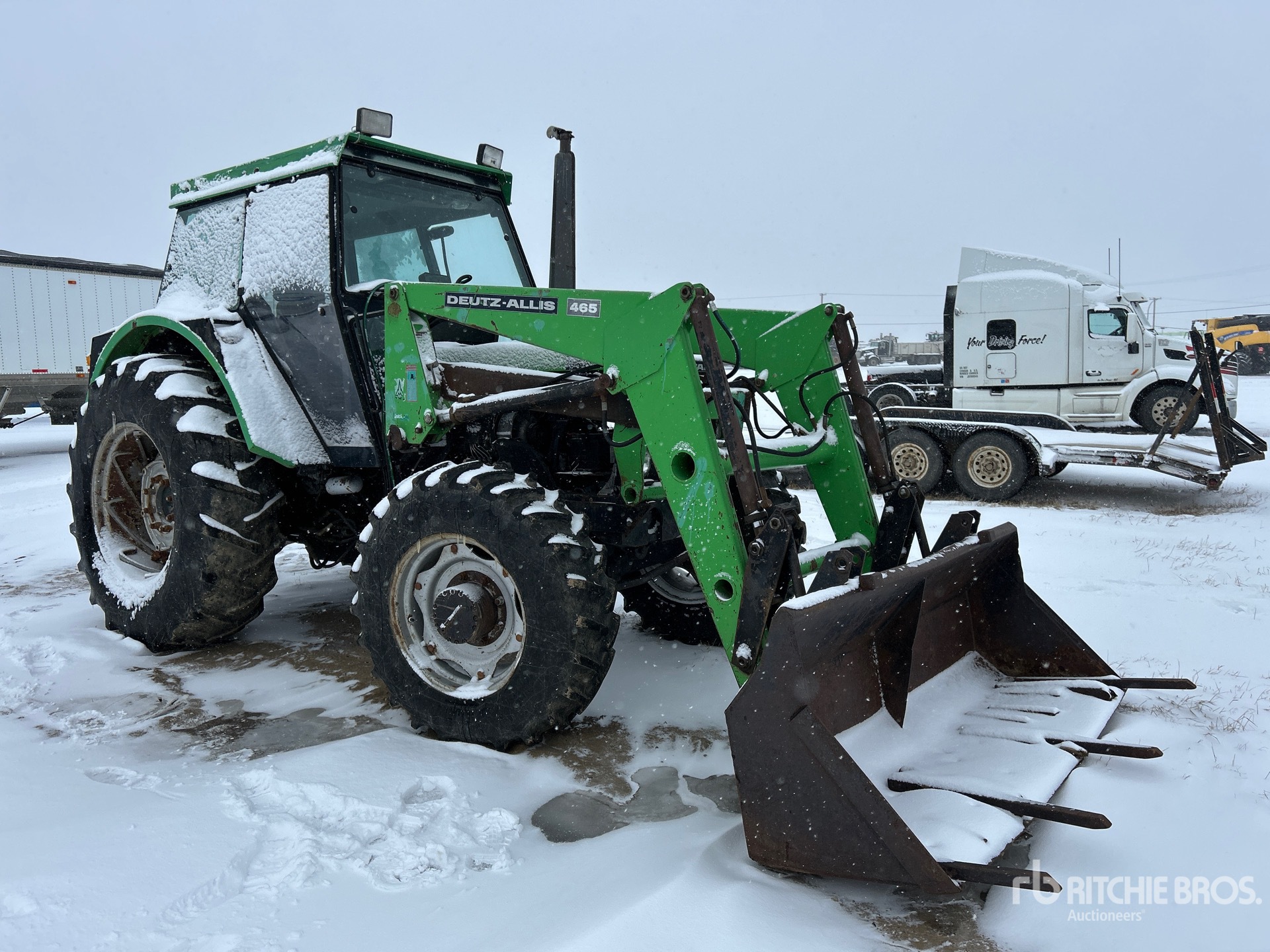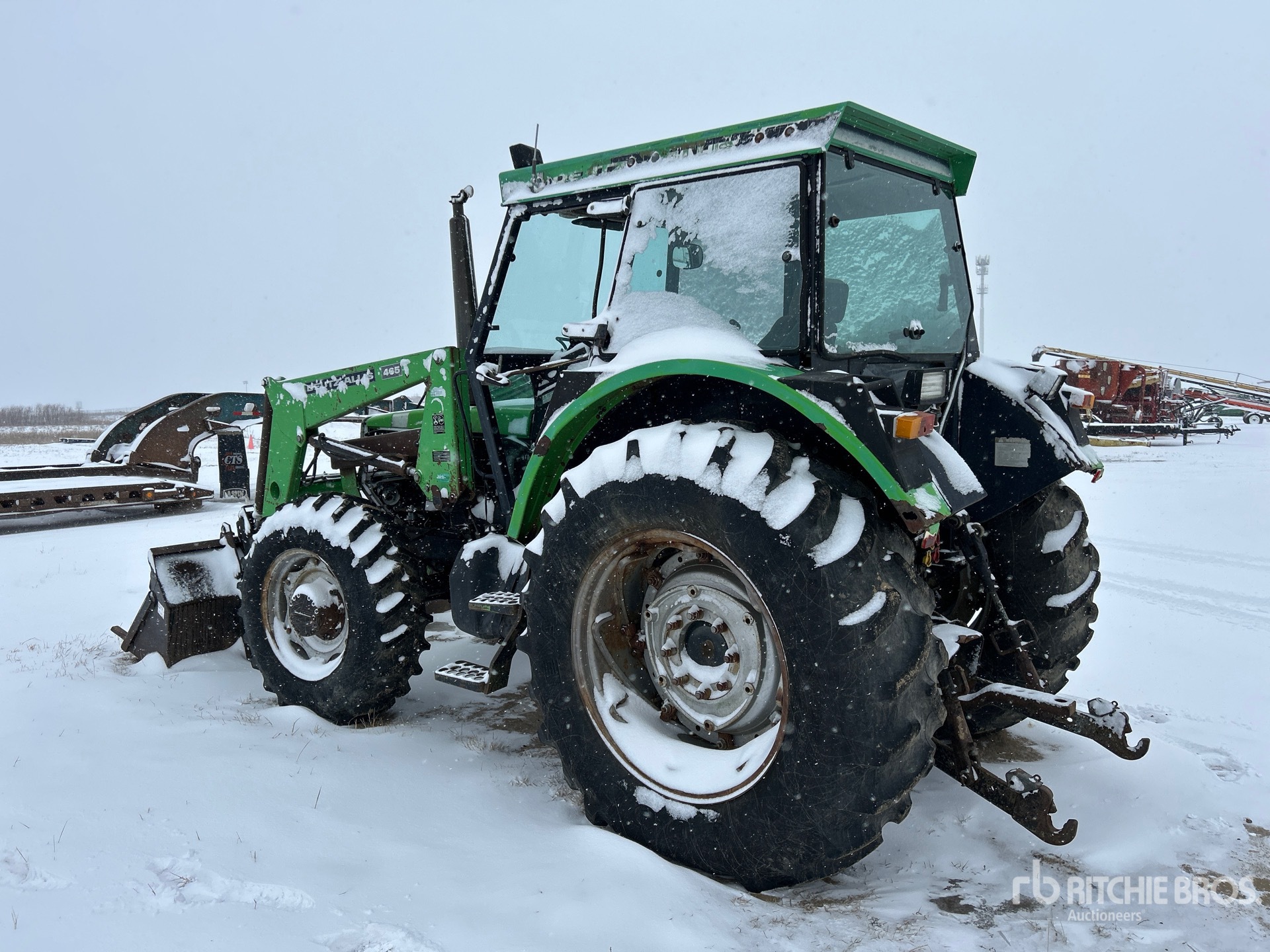 Enclosed Cab, Differential Lock, 15 Forward 5 Reverse, Manual Transmission, Deutz 465 Loader w/Joystick, 84 in Bucket, 2 Rear Remotes, 540/1000 PTO, 3-Point Hitch, Drawbar, 13.6x24 Front Tires, 18.4x34 Rear Tires