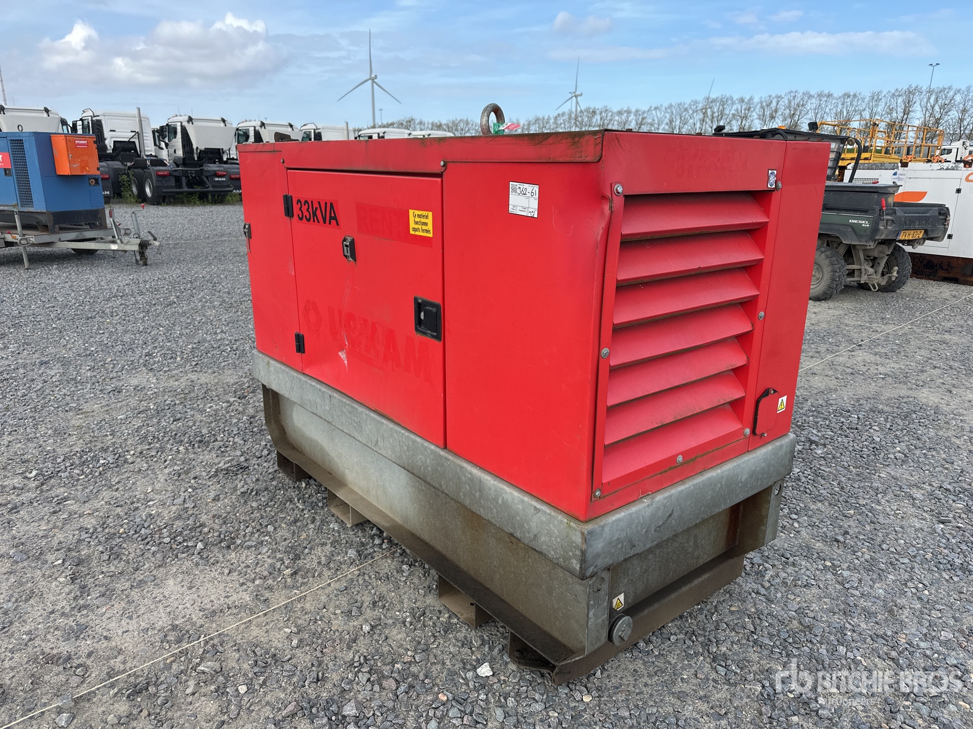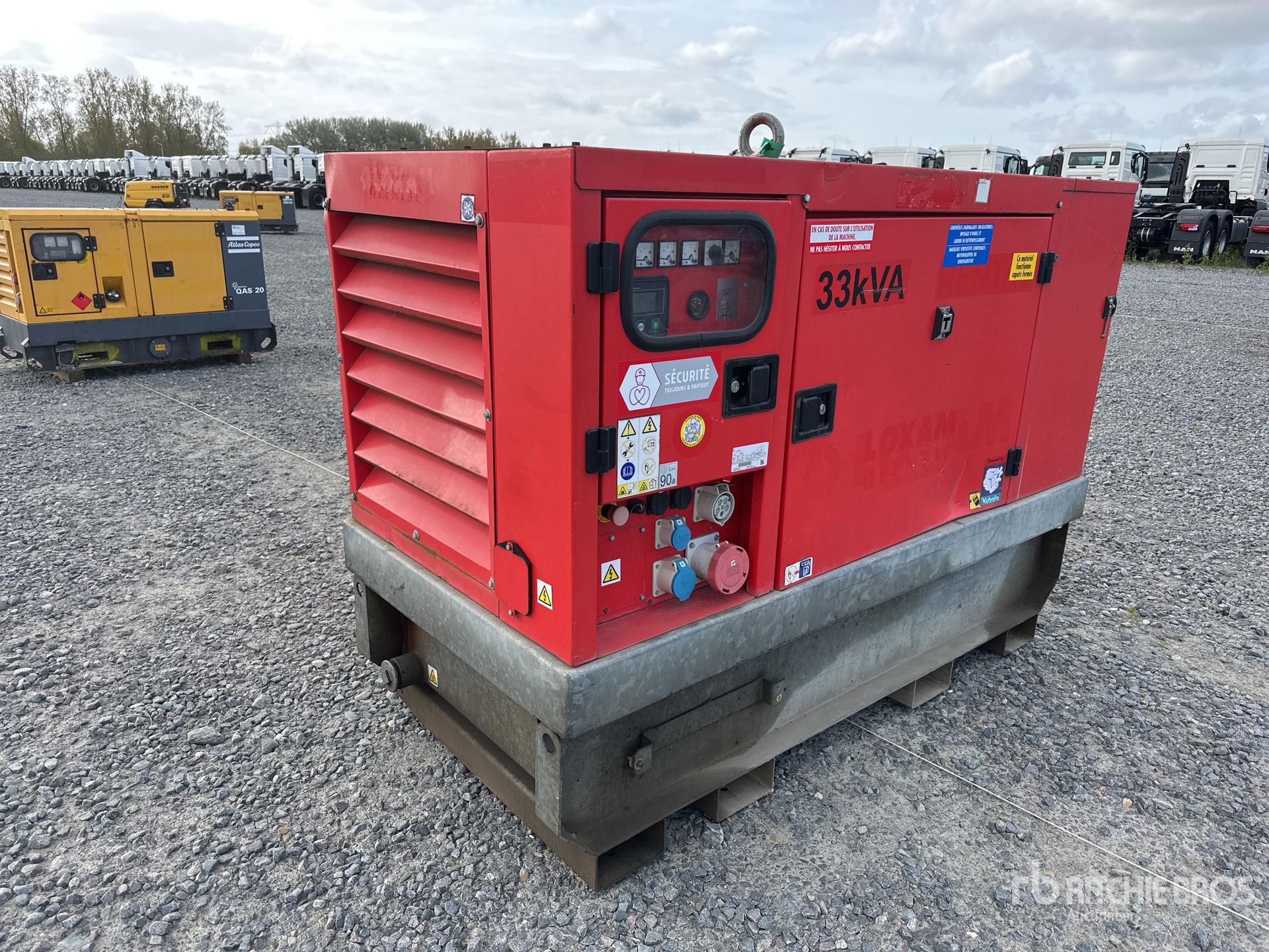 Kubota 4 Cylinder Diesel Engine, 33 kVA/ Rated 3 Phase Output, 400 V Rated Voltage, Sound Attenuated, Bottom Mounted Fuel Tank
