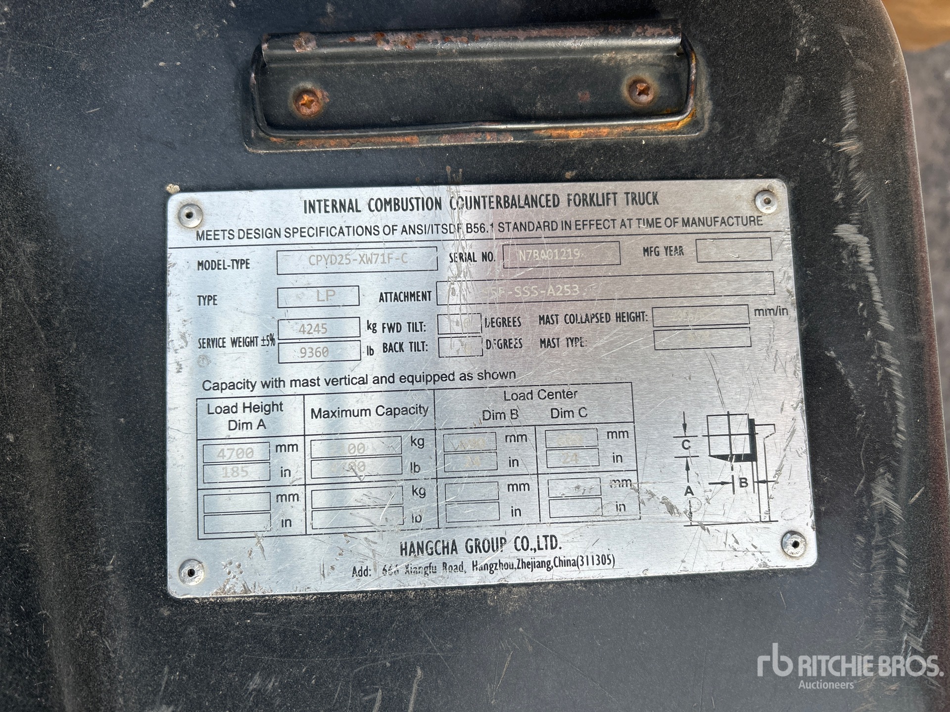 The detailed equipment information is limited in scope, and Ritchie Bros. Auctioneers has not inspected any aspects or components of the equipment other than those expressly set forth herein. Unless expressly stated, we make no representations or warranties, express or implied, concerning the equipment or its components, including without limitation any representations or warranties concerning functionality, conformity or compliance with any safety standard or requirement of any applicable authority or regulatory body, fitness for any particular purpose, or merchantability. You are strongly advised to perform your own detailed inspection of the equipment prior to bidding.