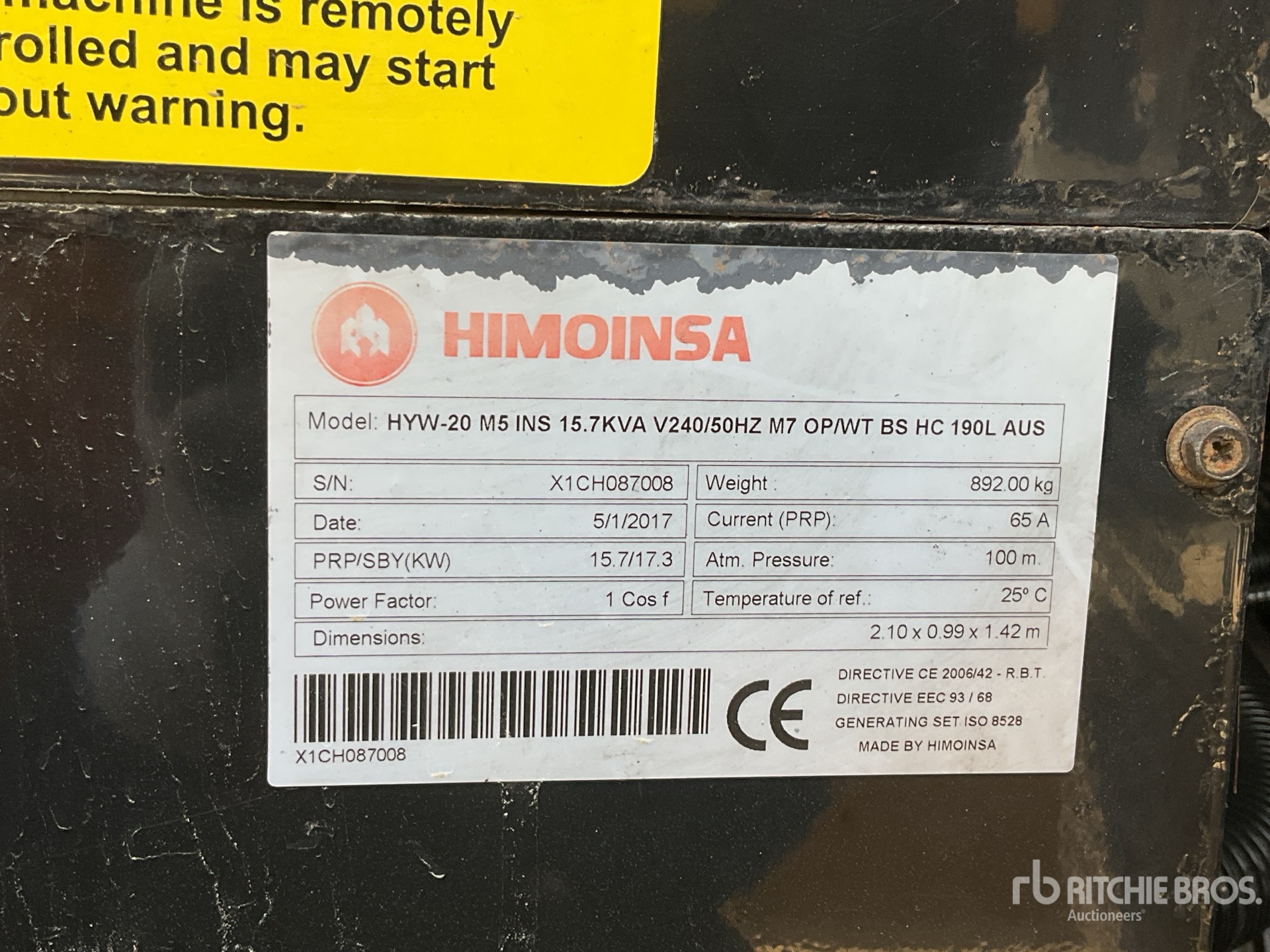 2017 Himoinsa HYW-20 15.7 kVA Skid-Mounted Generator Set