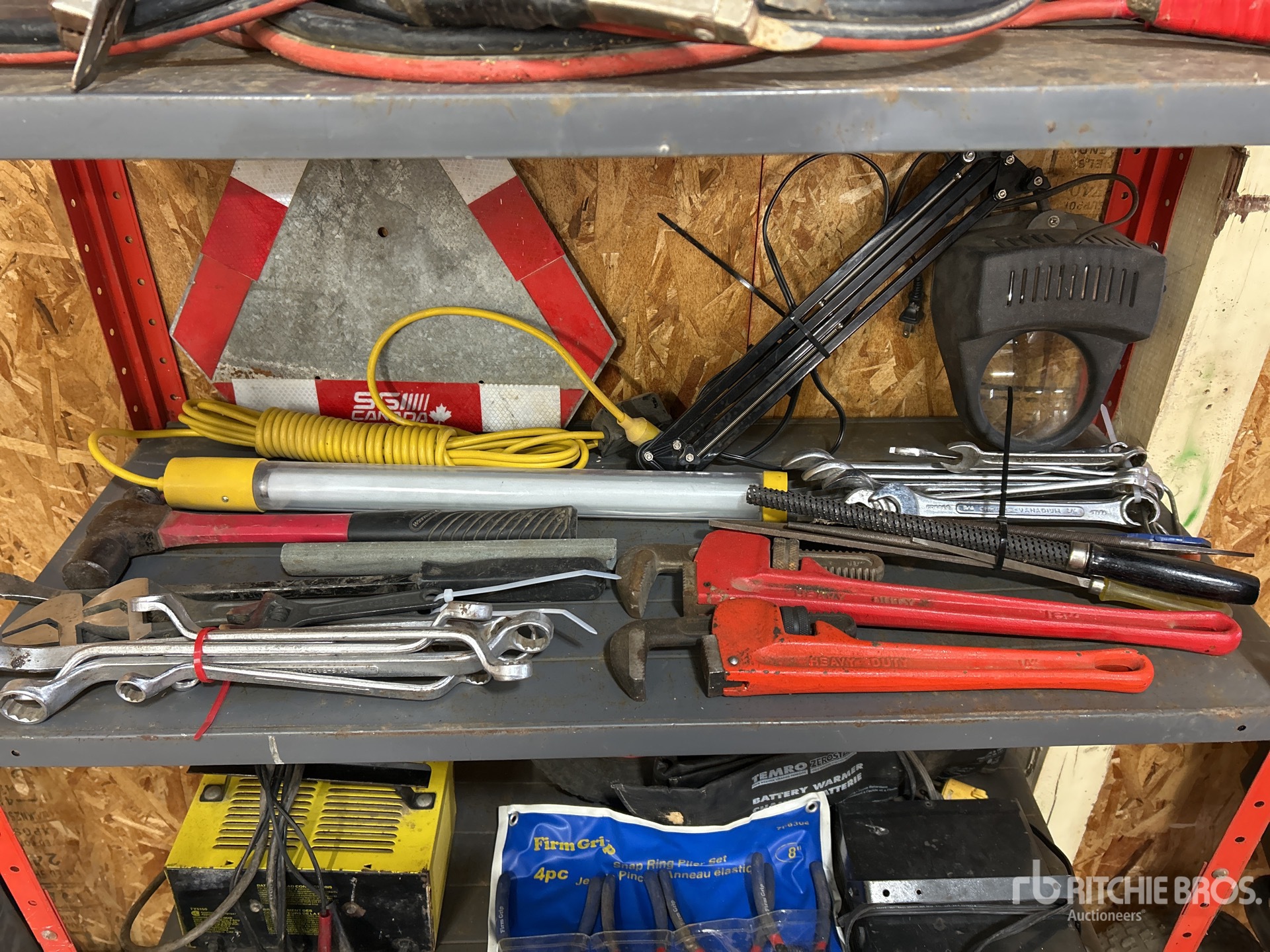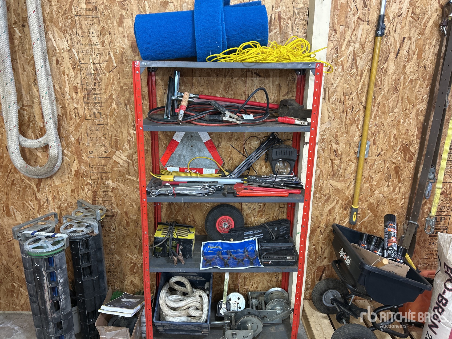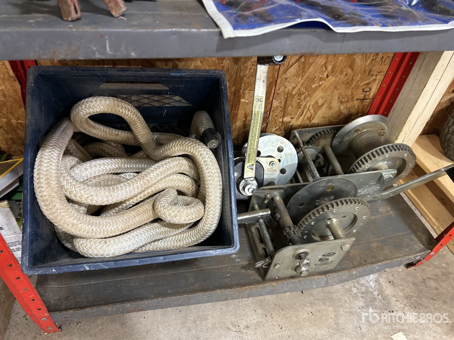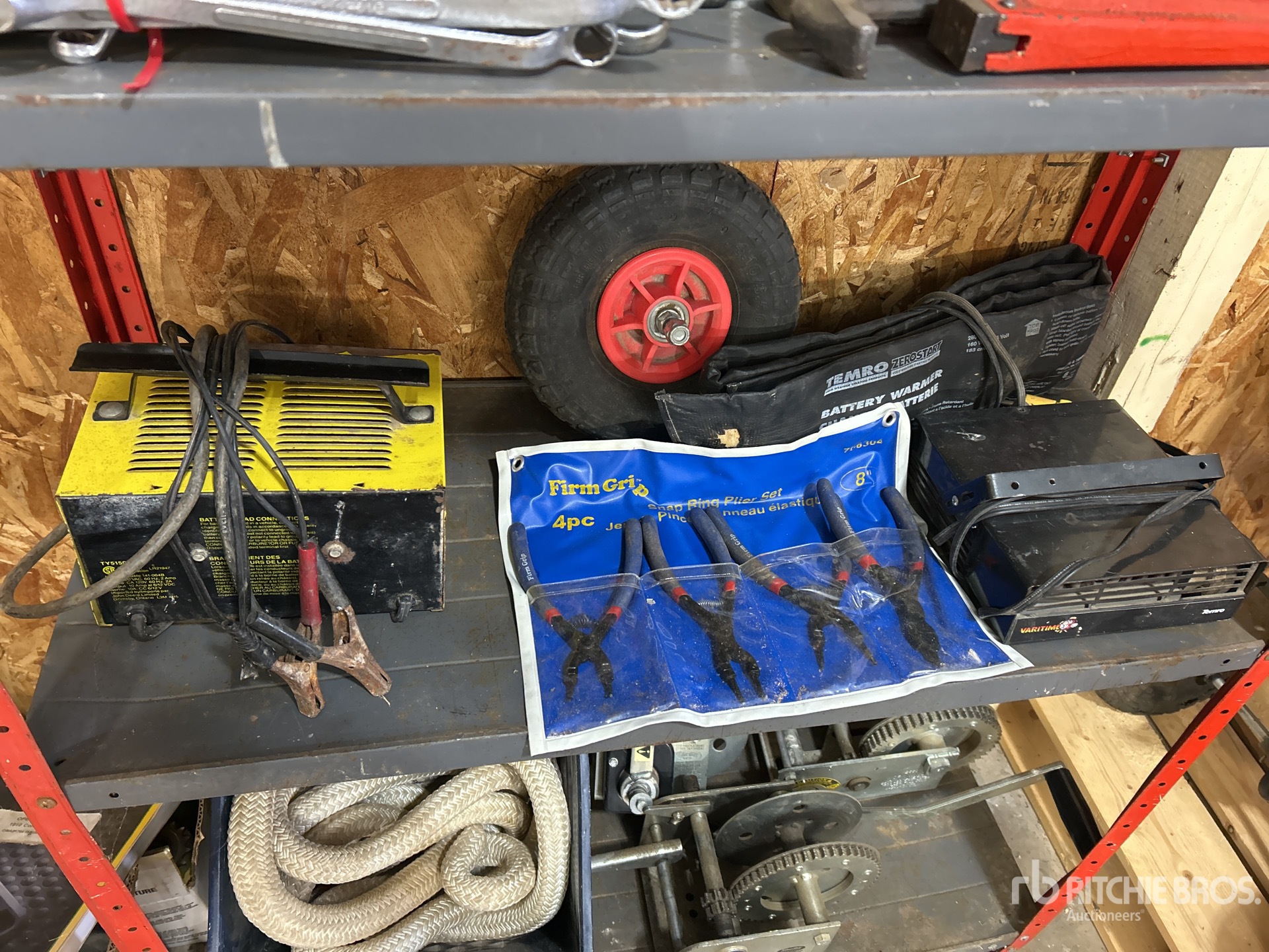 Rope, Winches, Battery Charger, Pliers, Wrenches, Shelf