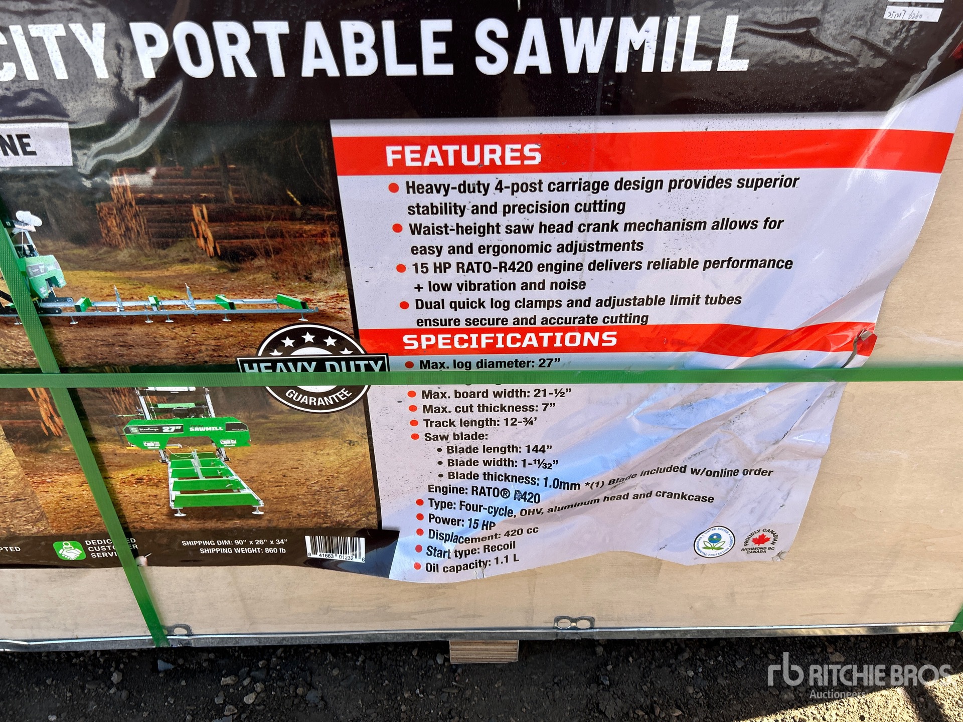 Gasoline Powered, 27 in Max Log Diameter, 10 ft Max Log Length, 21.5 in Board Width