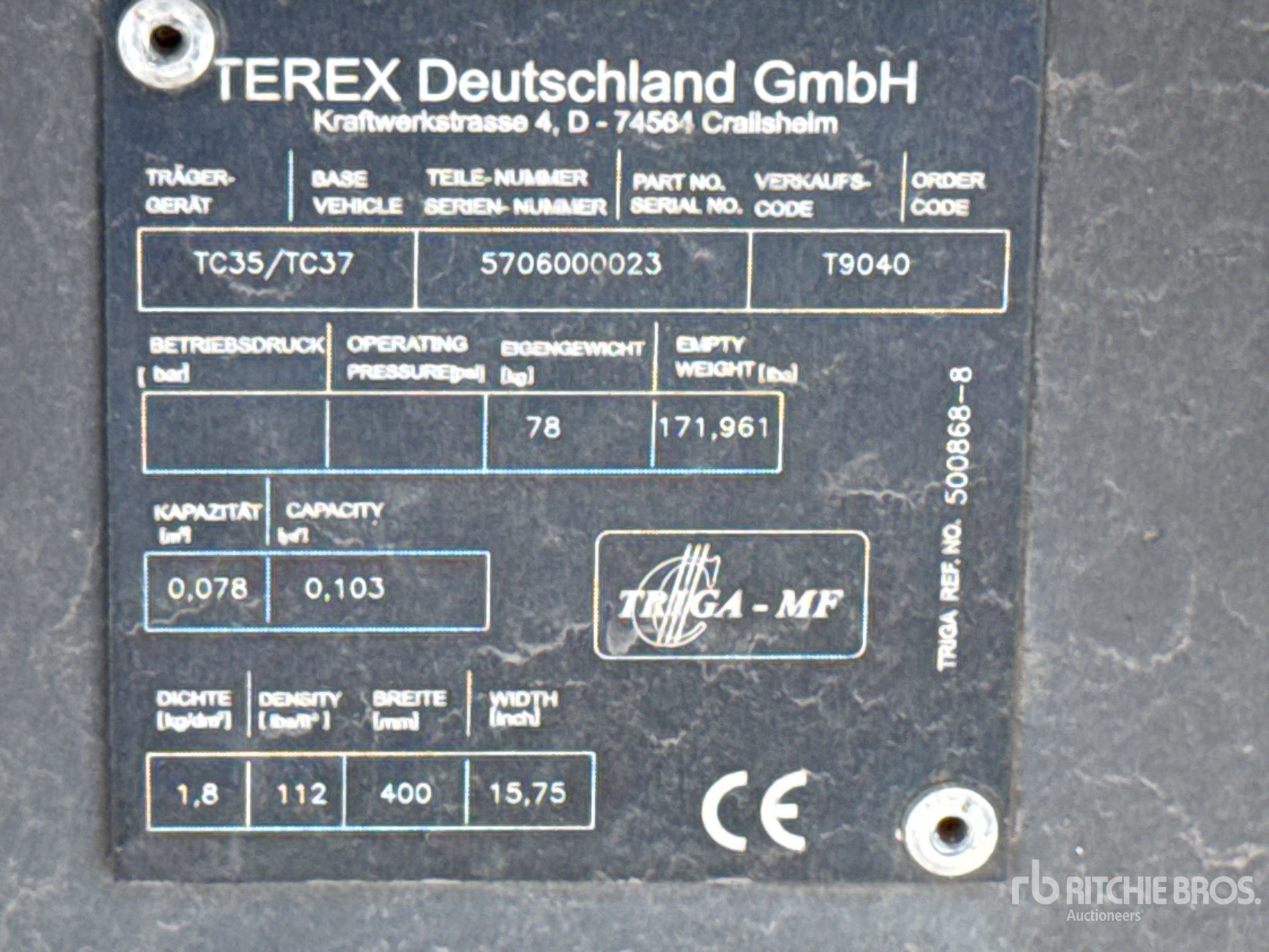 The detailed equipment information is limited in scope, and Ritchie Bros. Auctioneers has not inspected any aspects or components of the equipment other than those expressly set forth herein. Unless expressly stated, we make no representations or warranties, express or implied, concerning the equipment or its components, including without limitation any representations or warranties concerning functionality, conformity or compliance with any safety standard or requirement of any applicable authority or regulatory body, fitness for any particular purpose, or merchantability. You are strongly advised to perform your own detailed inspection of the equipment prior to bidding.